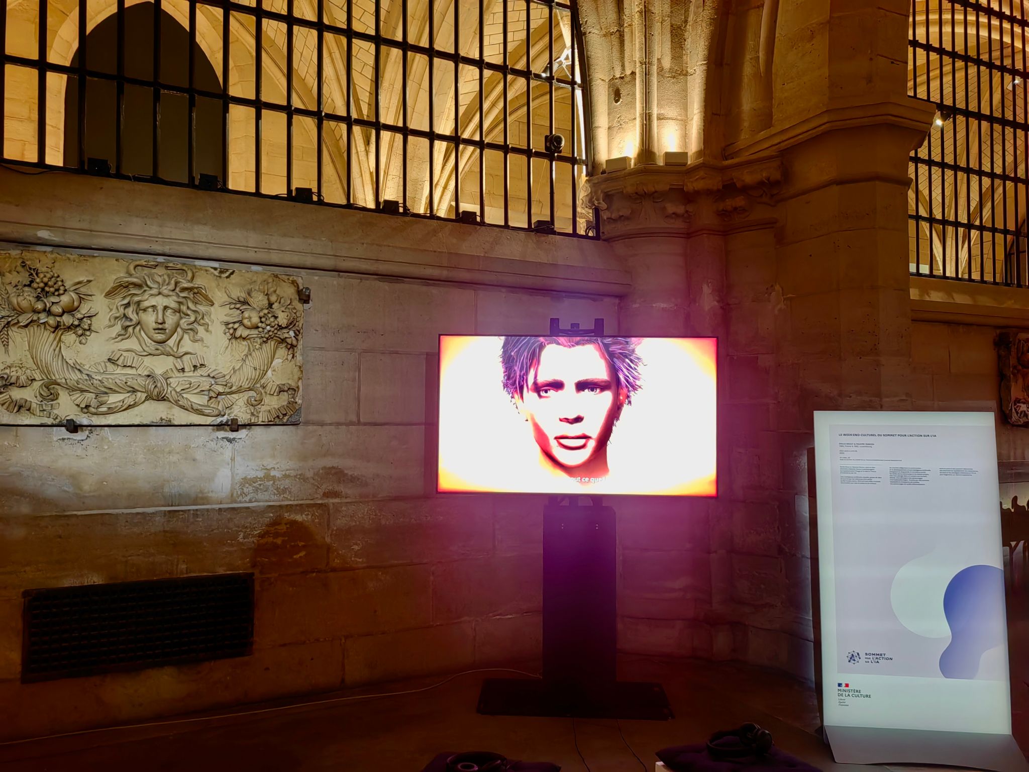 在峰会的AI实践应用、艺术及创新项目的展台前,我院代表与部分法国艺术科创公司代表进行了交流;通过参观巴士底狱举办的创意与人工智能:Machina Sapiens艺术装置展览,了解到二十多位法国和国际艺术家展现的生成式人工智能对艺术的探索以及社会的影响。人工智能技术的快速发展使艺术家意识到人工智能不仅可以改变艺术创作的过程,还产生了一些前所未有的表现形式和新的叙事手法。
