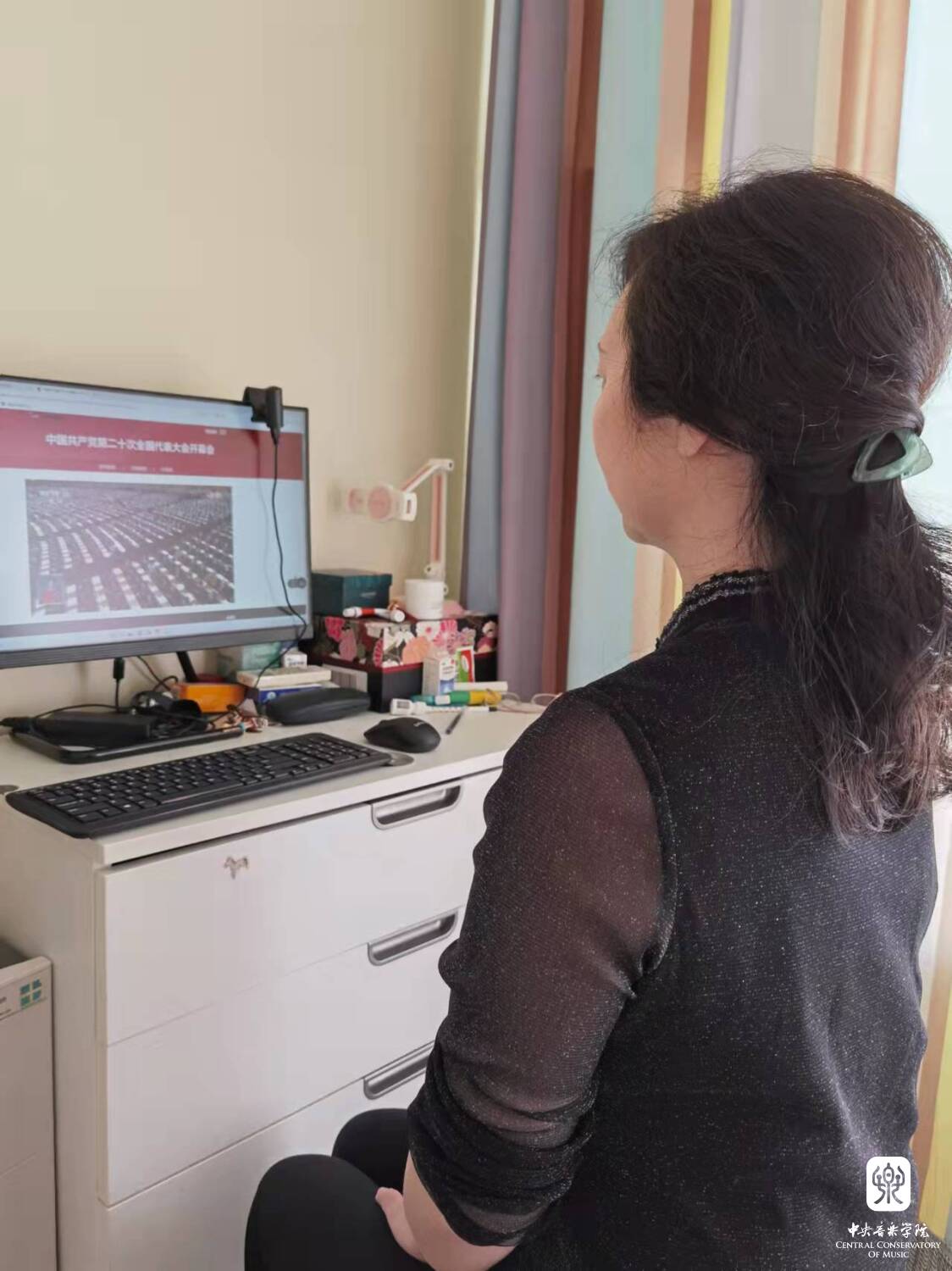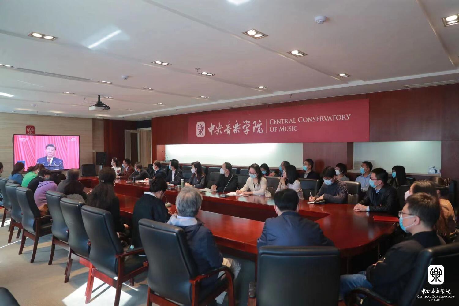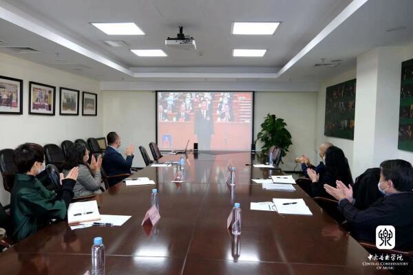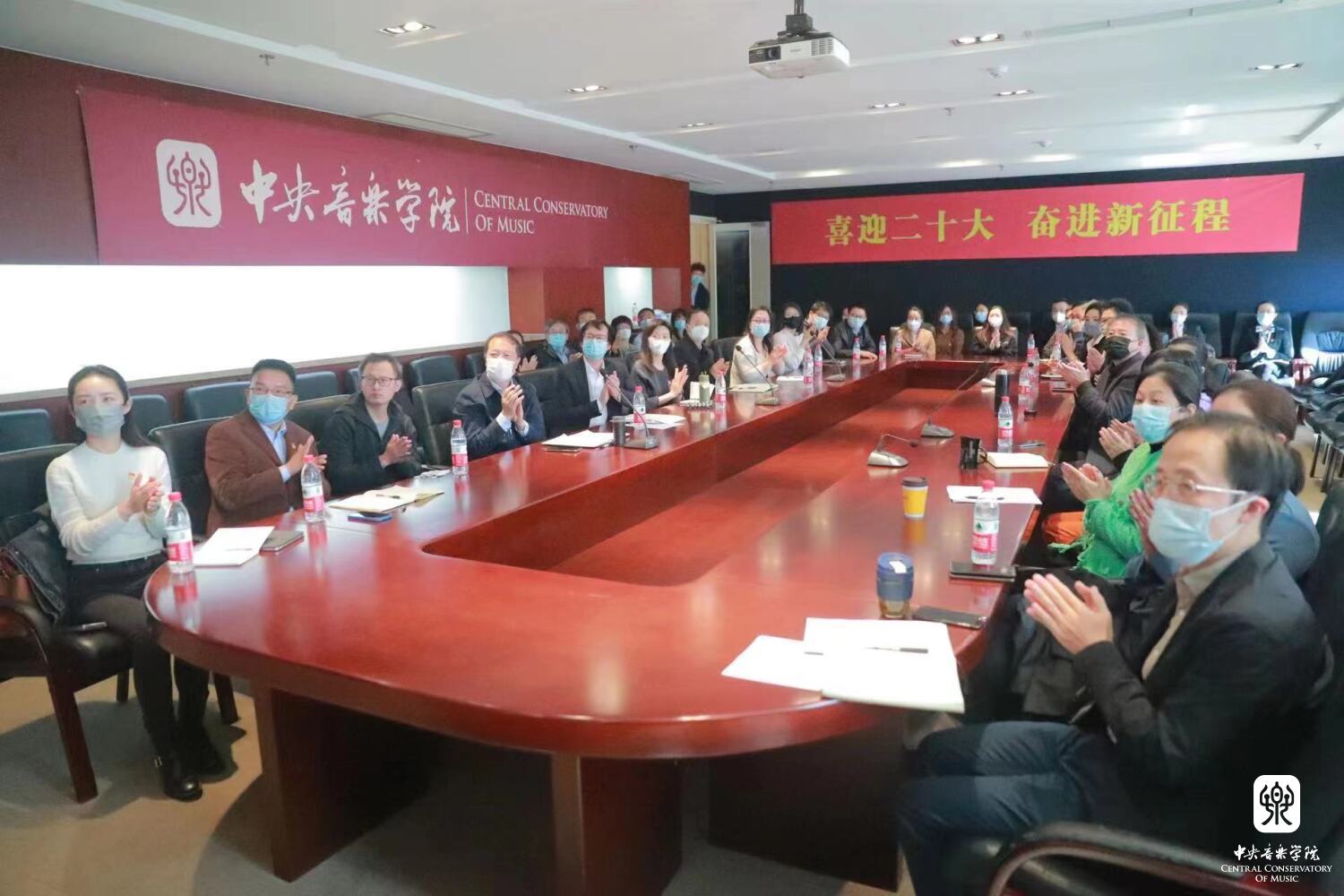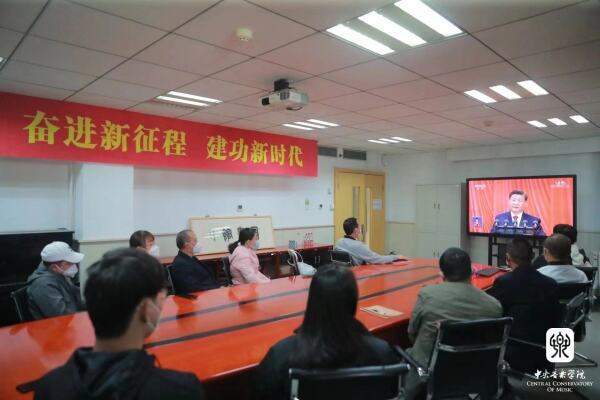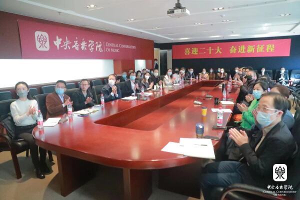 中央音乐学院组织广大党员干部和师生员工通过网络、电视、新媒体客户端等多种形式收听收看大会盛况。学校在教学楼、办公楼、图书馆、附中共组织了9个会场,能进入学校的校领导党委书记赵旻,副校长肖学俊、秦文琛、于红梅、柯扬及中层干部代表、教授代表、党外人士代表、退休教职工代表、青年教师代表集体收看大会直播,认真聆听学习习近平总书记二十大报告。